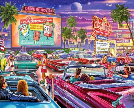 Car hops on roller skates took orders for popcorn.